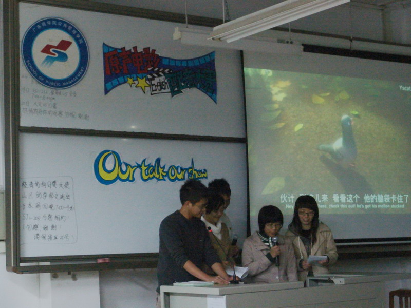 19时整,随着精彩的魔术表演视频播放,大赛正式开始。首先亮相的是08行1“Wild cat”组的“歌舞青春”,让我们感受到青春的旋律;然后是08行1“Tarzan”组的“人猿泰山”,逼真的音效让人感觉身临其境;09文2“That is it”组的“咖啡猫”,调皮可爱的咖啡猫形象被表现得淋漓尽致。另外,08行1的“马达加斯加”、08社保的“闪电狗’和09文2的”海底总动员”也各有其特色。