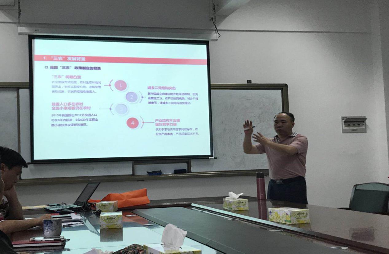 庄大昌经理对“关于乡村振兴战略的发展研究及舆情分析报告”专题授课,分别从“三农”发展背景、乡村振兴战略的提出、乡村振兴的总体要求、实施路径及保障措施,以及发展趋势等五个部分阐述乡村振兴战略发展的重要性。从三农问题凸现、城乡二元结构突出、产业结构不合理等方面阐述了乡村振兴战略发展研究的背景,分析老龄化现象、公共资源配套不完善、产业能耗与污染以及农民增收等问题,提出怎样扭转让荒废田地利用起来、转变原来的碎片化管理模式以利于农田规模化管理。