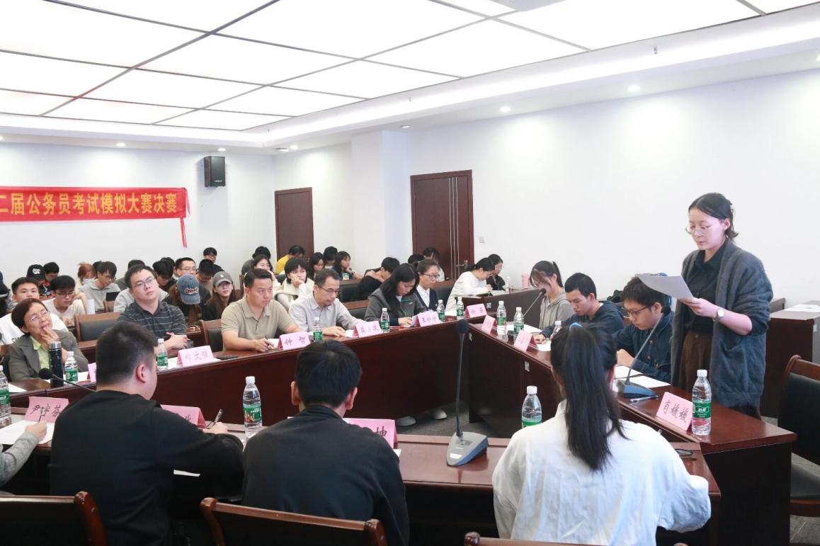 为给伟德国际1949始于英国的榴园学子打造一个沉浸式公务员考试的平台,让同学们体验公务员考试的各个环节和考试氛围,2024年11月19日下午,由伟德国际1946源于英国主办、行政管理学系、学院团委员工会承办的“榴园杯”第二届公务员考试模拟大赛决赛在立德楼642会议室成功举办。