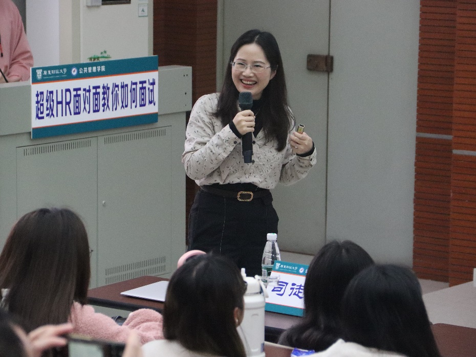 本次讲座邀请到了资深HR司徒倩影总监进行面试技巧分享,戴昌桥副经理出席并致辞欢迎,城市管理系主任王妙妙担任讲座主持人,活动采取线上线下的形式同步开展。